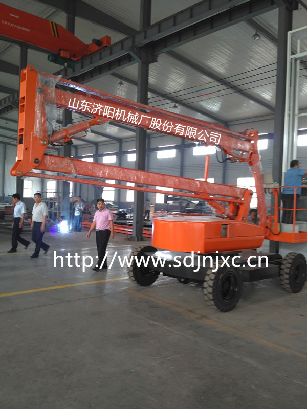 自行式折臂升降機(jī),利用柴油機(jī)為動(dòng)力,加電瓶采用電啟動(dòng),適用于野外及無電源場(chǎng)所作業(yè),自支腿、自升降、自行走,360°旋轉(zhuǎn)作業(yè)。本產(chǎn)品具有操作簡(jiǎn)單,使用方便,作業(yè)面大,特別是能夠懸伸作業(yè),跨越一定的障礙物或在一處升降,可進(jìn)行大范圍多點(diǎn)升降作業(yè)的特點(diǎn),極大地提高了工作效率。該系列高空作業(yè)平臺(tái)車廣泛用于市政、電力、路燈、公路、碼頭、廣告、園林、小區(qū)物業(yè)、廠礦企業(yè)車間等行業(yè)范圍升降作業(yè)。上升,下降,旋轉(zhuǎn)(360度)、探出等操作,易于跨越障礙到達(dá)工作位置,在不同情況下快,慢行走(前進(jìn),后退,轉(zhuǎn)方向)。