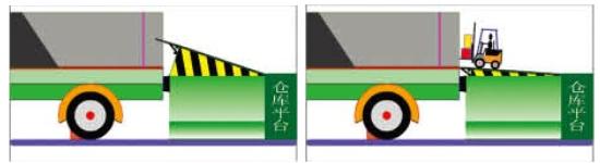 固定式裝卸過橋,它主要作用是在貨臺與運輸車輛之間搭起一座橋,使叉車便利地行駛,達到裝卸貨目的,該設備與貨臺一端等高。另一端搭在車廂后緣上,并能根據(jù)不同的車型及裝車過程中車廂的變化,自動調整高度,該產(chǎn)品可根據(jù)用戶的不同需求,在外型尺寸承受載荷方面作特殊設計。 設計完美、緊湊,性能可靠。 采用意大利進口液壓泵站,噪音小,使用壽命長。 利用上海寶鋼制作的框架強度高,載能力大。